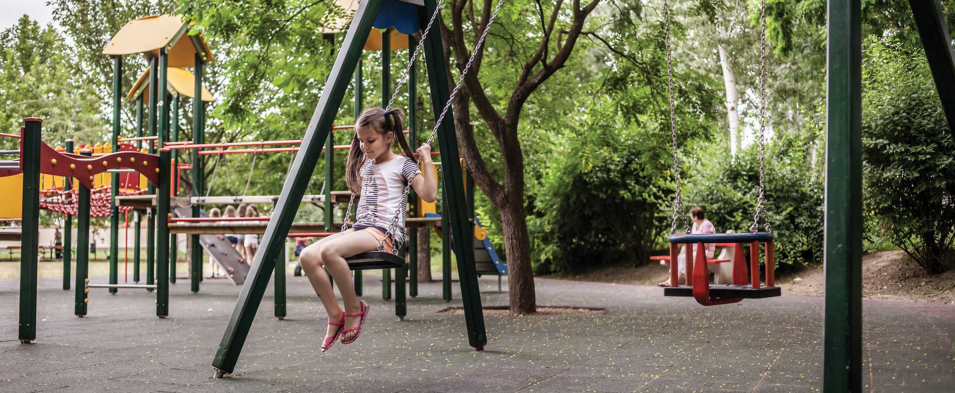 Fallschutzplatten sind aus Recycling-Gummigranulat gepresste Matten, die von einer offiziellen Prüfstelle auf den HIC-Fallschutz für Kinder zertifiziert sind.