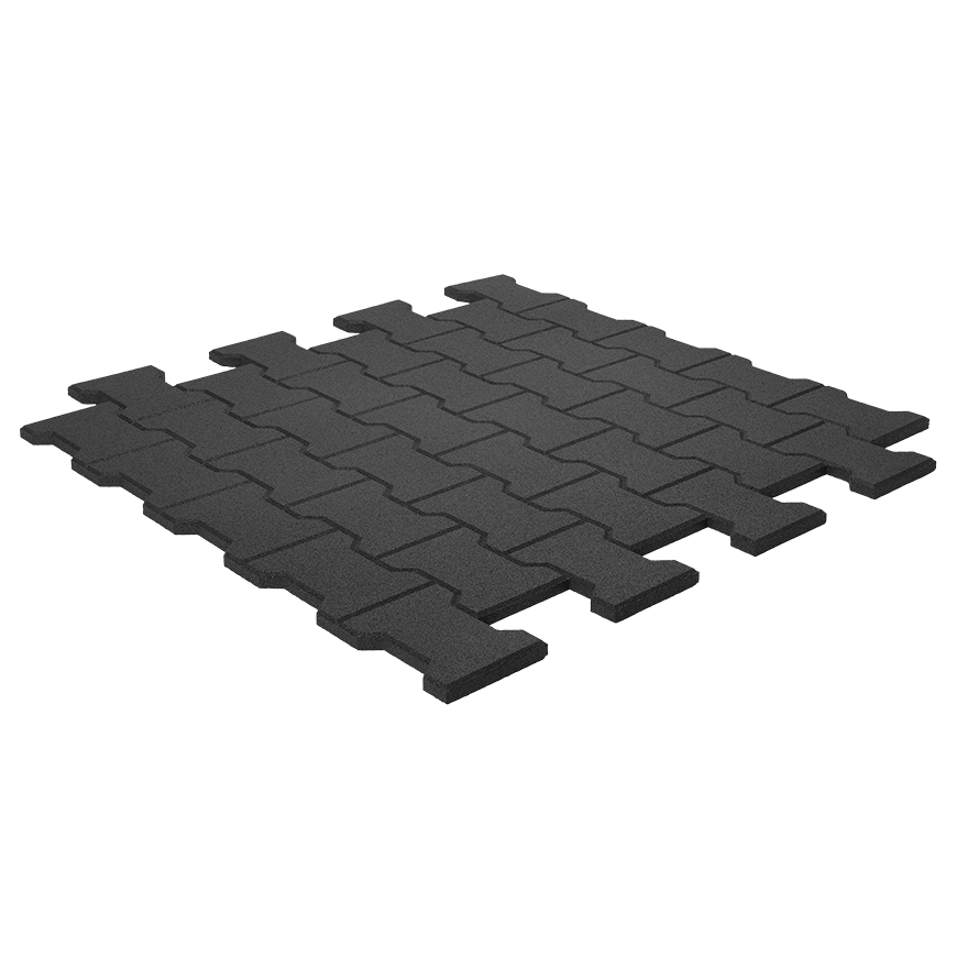 Der Fitnessboden X passt mit seinem rustikalen Pflastersteinmuster ideal in Fitnessstudios, die auf Industrial Design setzen. Der Fitnessboden X kommt bei unverputzten Wänden und Glas-Metall-Kombinationen besonders gut zur Geltung. Dieser Bodenschutz ist auf Grund seiner Optik vor allem bei Fitnessgerüsten beliebt.