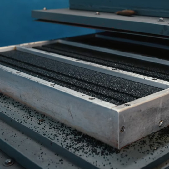 Die Technologie bei der Herstellung der meisten Recyclinggummiprodukte hat sich in den letzten Jahrzehnten kaum verändert. Große Formen werden per Hand mit Granulat befüllt und schließlich unter Hitze zusammengepresst. Wir bei Gum-tech® möchten hier neue Wege gehen, um bei der Neuentdeckung unserer Branche ganz vorne mit dabei zu sein.